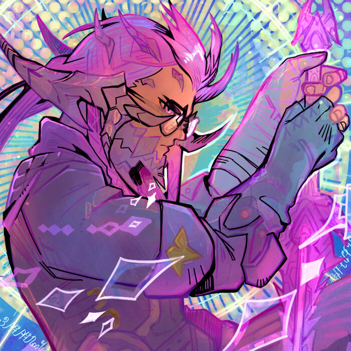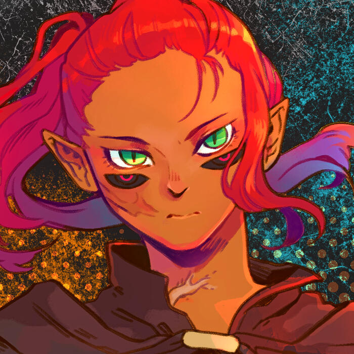 Nitha was born into an enormous farming family, and though he loved his small community and his human family, he felt out of place. He left not long after his older brother, the only sibling to bear a Calling that differed much like his own, in search of meaning. His search was one of solitude for a time, his caution and apprehension leading to every burden being one he took himself. He augmented his body with magic, reinforcing himself so he could take on anything.While out in the world, forces that sought him for his power and his beauty closed in around him at every turn. Through it all, he's realized that the walls he put up to protect himself had done more harm than good. He overthinks things, his thoughts leading him to miss details. For a time, he thought he was making all the right decisions. Now the fear of opening up, of vulnerability, is lifting and he continues to reflect on and fix the mistakes he's made. The world is so large and so beautiful and it feels like he's diving into it for the first time.