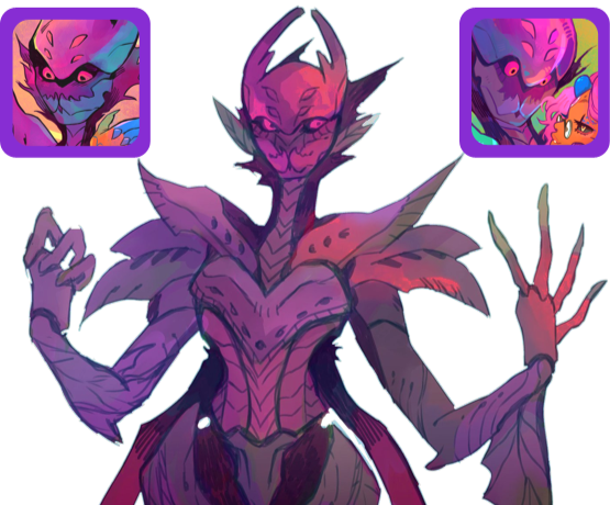 Vira is one of hundreds of children born and raised in the little community by the lake. What started out as a modest home in the mountains ballooned out into a sprawling commune with numerous adults and a constantly-growing collection of children. The nearby towns were caught off guard by the needs of so many at first, but not anymore.She is one of the older children, the daughter of Sif and Kriemregia, and she has always taken what she wanted. Her unwavering confidence led her to be a role model for younger kids and she never shied away from showing off. She learned early how to tap into the strengths that came with being part dragon and part mantis; and part godchild, though those abilities come subconsciously. A bad timeline would see her master her god strength and use it at the expense of others.Fortunately her attention is focused selfishly on three others that she's taken as her spouses. The first two are Hound's children, a warrior from the old world who'd had many, many kids. And a bug whose destiny would have been to raise a colony if she could. Vira pushes every single unwritten rule until it breaks: Hound children were meant to be strong, forceful, dominant. They paled in comparison to Vira. Her bug wife could never fulfill her role. To Vira, that impossibility was just defeatism.In her early days she wanted nothing more than to be free of her family, free of the lovey-dovey domestic family life she'd been surrounded by as she was raised. Now, however, she's gone and done that exact same thing herself.